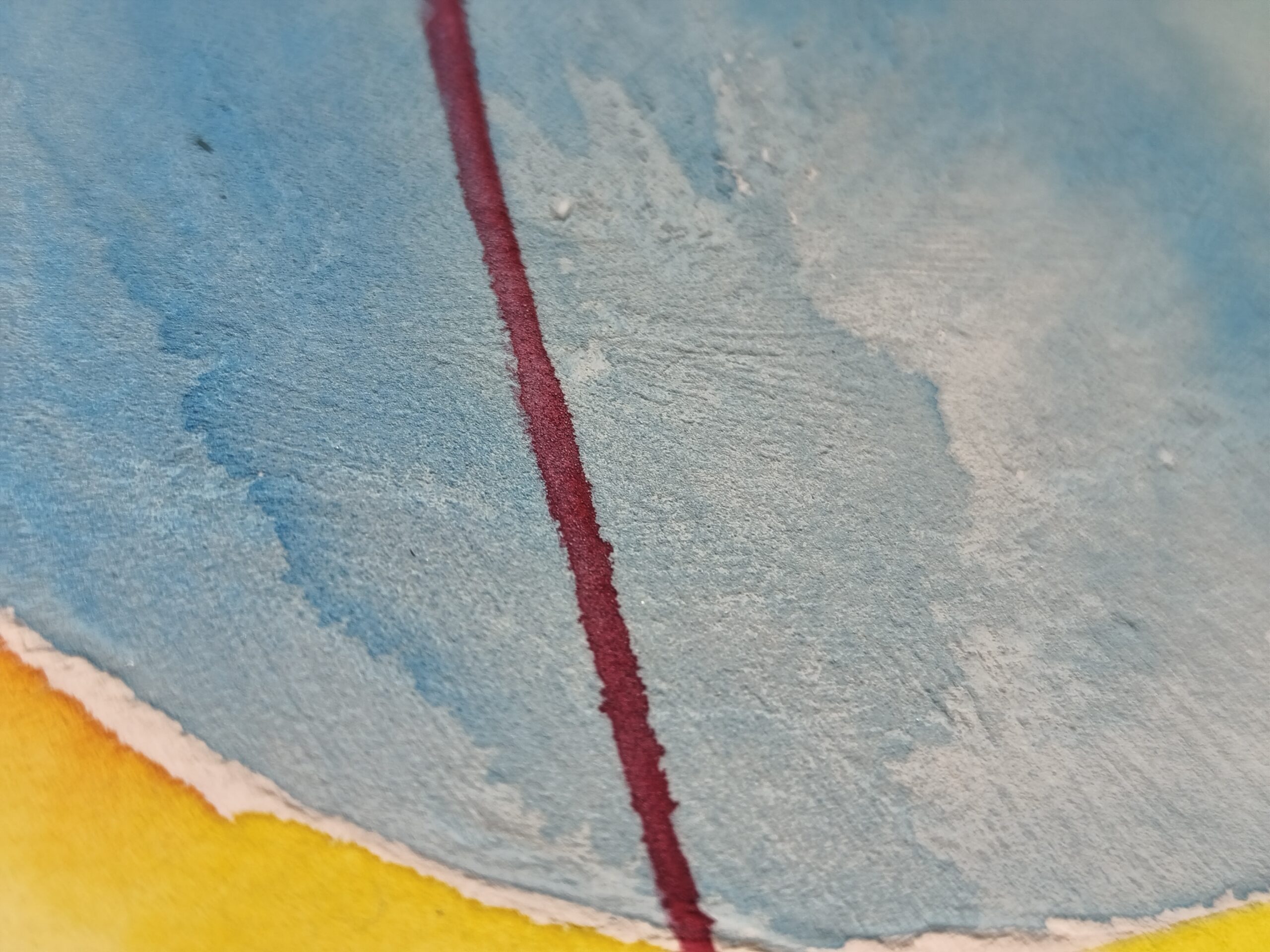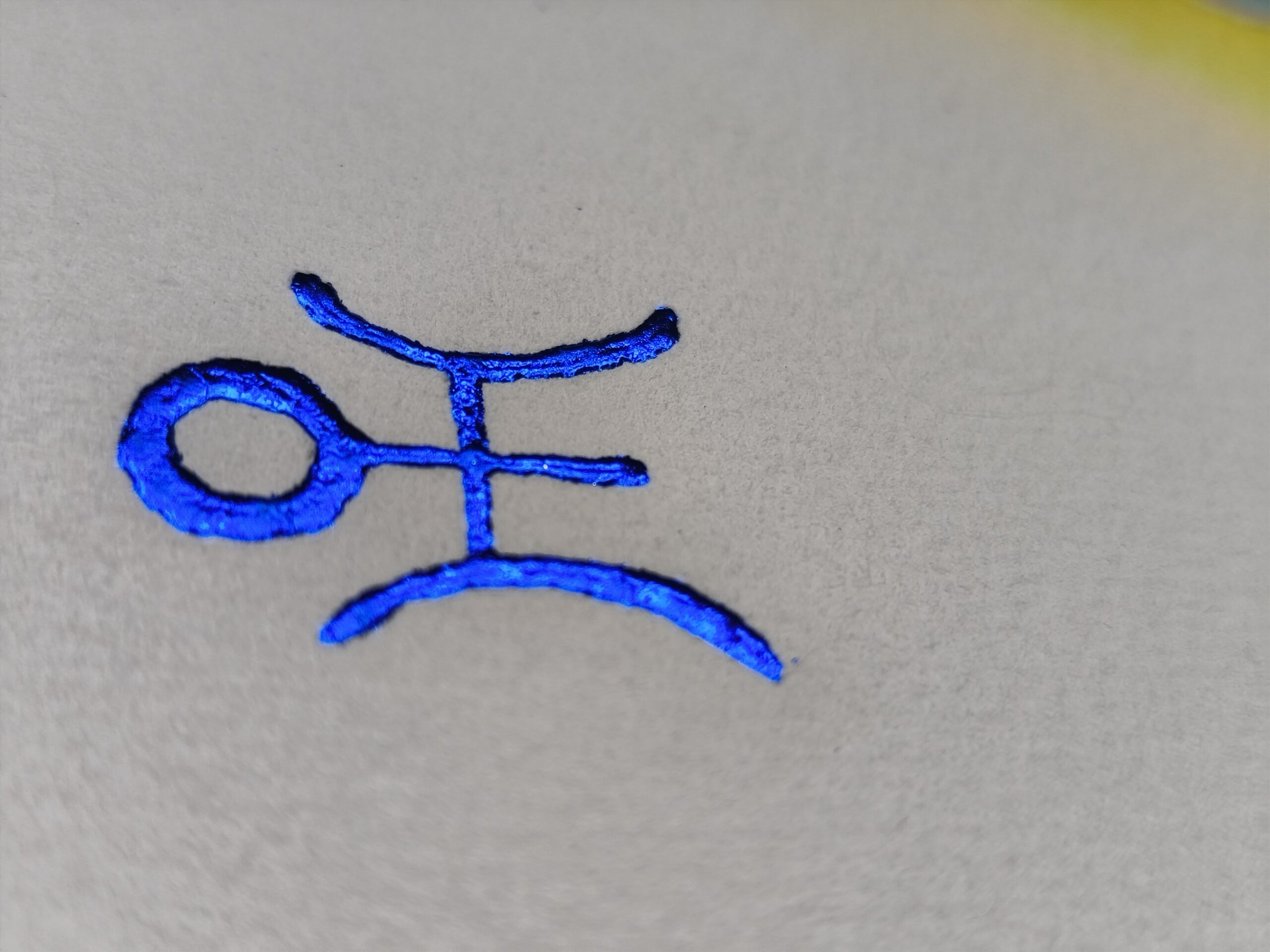 La planète possède un beau relief texturé, son symbole est posé à la feuille métallique.